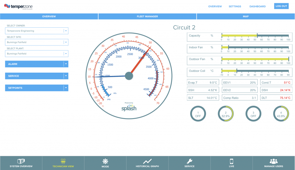 Temperzone heat-pump water heating solutions are supplied enabled with IoT based performance and service monitoring. This allows ease of post installation optimisation and performance reporting. It allows for early detection of system faults and should an issue arise with any part of the system, the IoT platform can provide remote assessment and often resolution of the problem, often avoiding the need for on-site technician, or dramatically reducing the time cost of an on-site visit as the issue is already identified.